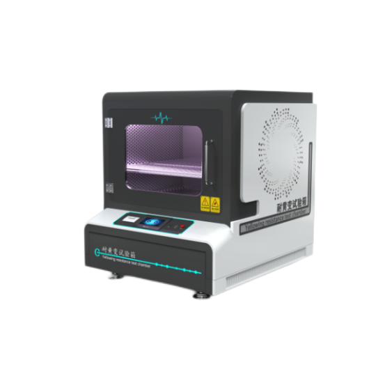 耐黄变测试箱适用于仿真阳光的紫外线辐射及热度,试样于机台内经紫外线照射与温度作用, 经过一段时间后,观察试样耐黄变的程度,可用染污灰色标作参考,判定其黄变的等级,测试时间依厂商的协议而定。机台附件齐全,可作为基本的耐黄变试验,亦可当老化试验机及烘箱使用,呈现一机多用途的功能。