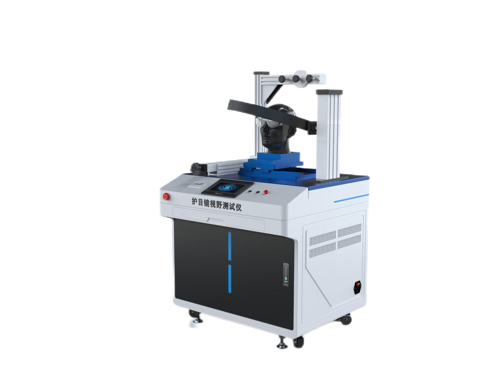 1、按照说明书,将样品佩戴到头部模型上,并处于佩戴位置。B.2.2将测角仪设定到0°C,调整连续激光器,使光束能够垂直照射到头部模型右眼角膜顶点处的光电探测器。绕通过角膜顶点的垂直旋转轴向鼻侧方向旋转头部模型至镜片边缘或镜框遮挡一半光束时的角度即为水平方向题侧的视野。